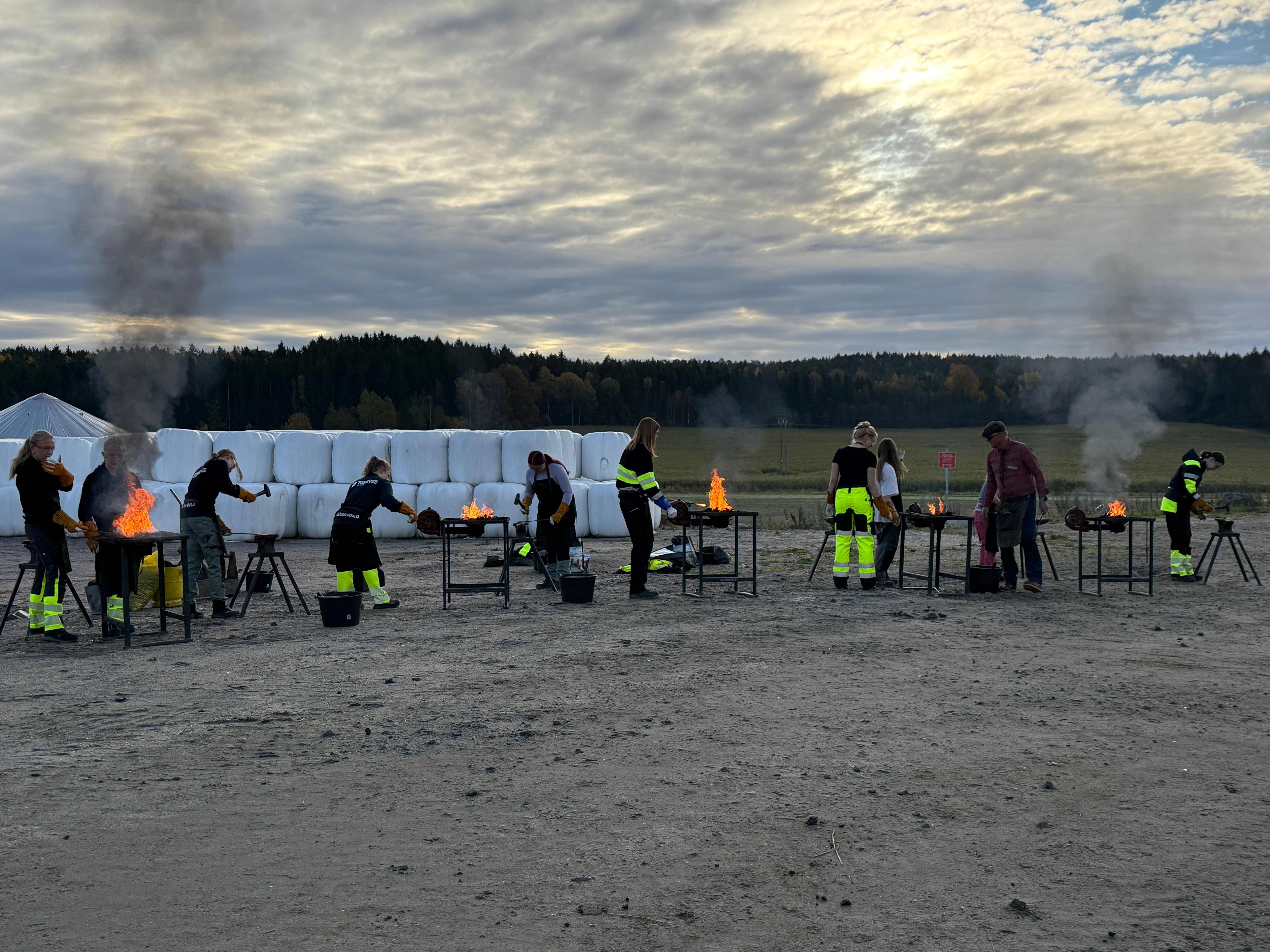Konsentrasjon ved arbeidsbenken i stallen når det sys lærutstyr.